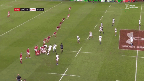 Often when we are coached team defence as kids we are told to stay in a straight line, to keep even spacing, to not rush up on our own. When you look the image below of Wales’ defence against England on Saturday, other than Alun Wyn Jones standing behind the ruck instead of a 9, you would be forgiven for thinking that it’s a normal defence like any other.