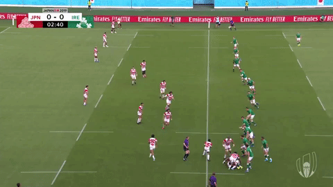 As we can see in the clip above, Japan use these 3 players as a decoy to honeypot Irish defenders and open up a gap for the next pod of two forwards to make a linebreak.