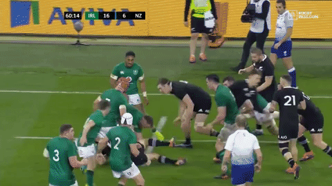 Although they understandably don’t quite get the numbers right at the ruck, the double decoy and pod of 3 forwards still allows the All Blacks to get the ball from one sideline to another and up to the 22 metre line.