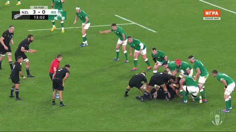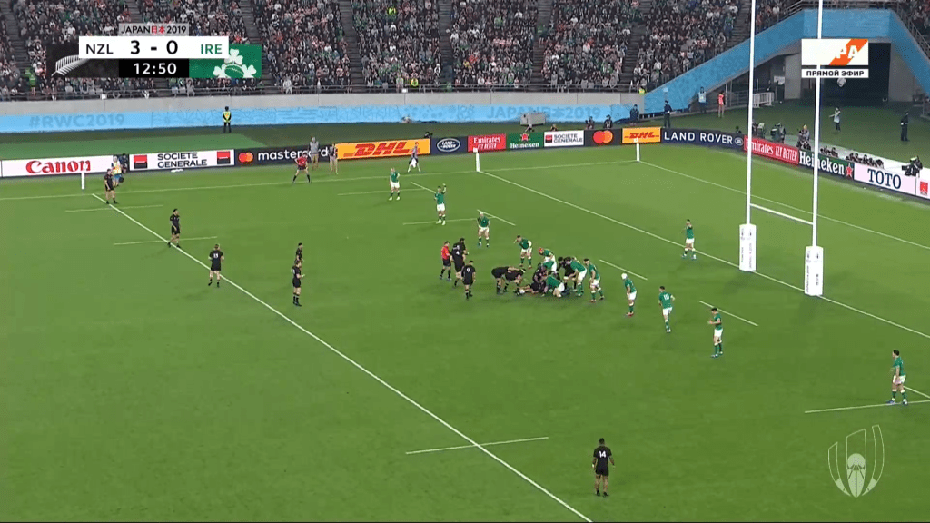 3-0 up in the 13th minute of the game, New Zealand recover an over-thrown lineout and look to play their way into the Irish 22.