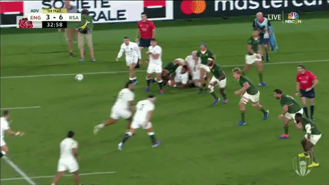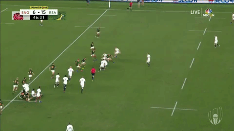 Ford eventually decides that running the ball isn’t an option and kicks the ball back to South Africa. However, the Springboks are clearly enjoying defending at this stage and kick the ball back to England again.
