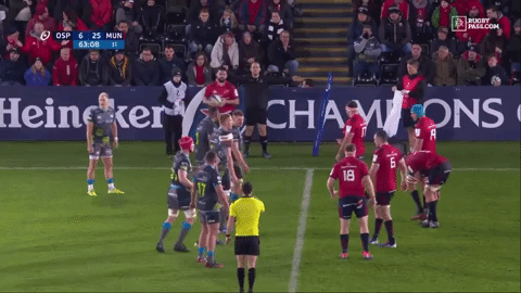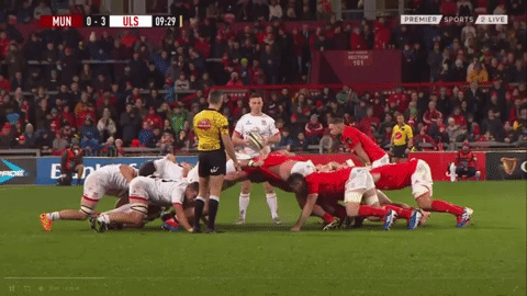 Though not as effective as McCartney when the opposition has possession, Rob Herring has also shown an ability to consistently win scrum penalties on his own possession, particularly in the higher profile games against the likes of Munster (3) and Bath (2). In the clip above, Herring does a good job of keeping the shoulder gap between himself and teammate Marty Moore tight, allowing them pop the Munster front row to win the penalty.