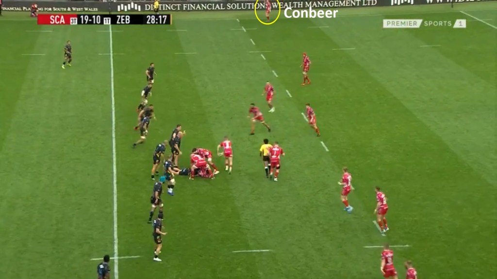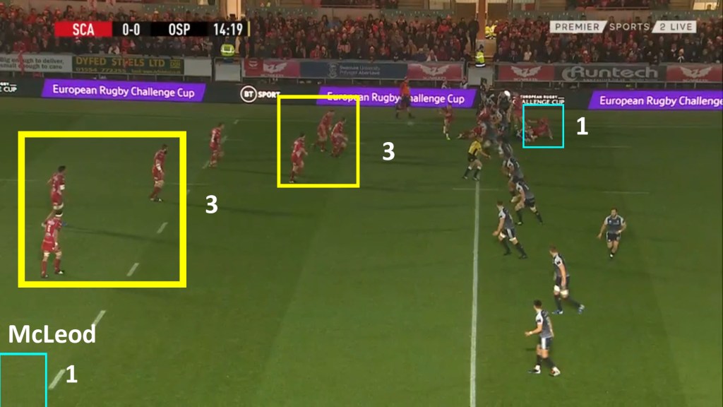 By offloading-and even kicking in flanker McLeod’s case-to keep the game unstructured, the opposition defence becomes unstructured too; inevitably creating space elsewhere on the pitch and allowing the Scarlets to play to their strengths.