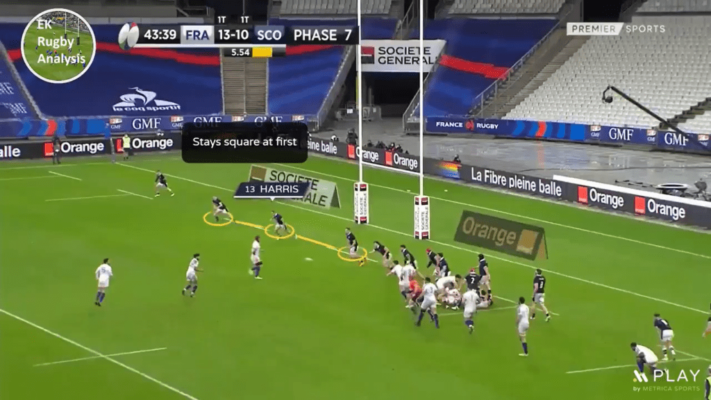 This was a massive defensive effort from Chris Harris against France with Scotland down to 14 men.