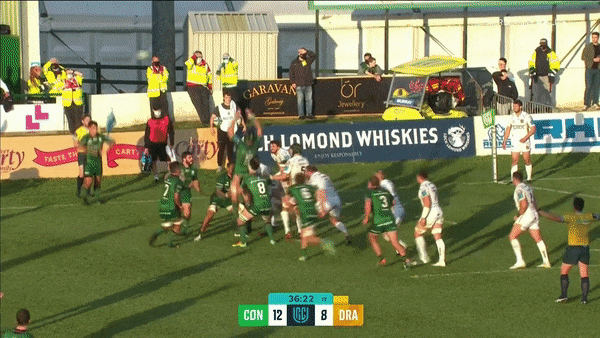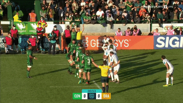 As we can see in the clip above, the Dragons looked to counter this by avoiding lineouts in their own half whenever possible, resulting in them running the ball back from deep here and eventually conceding a penalty to make it 6-0 to Connacht.