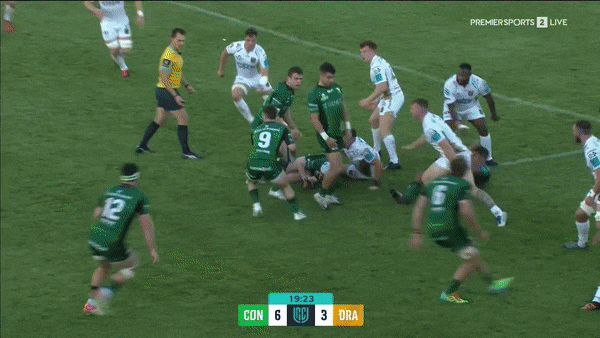In spite of this, Connacht didn’t help themselves in the following minutes with Blade conceding a penalty straight off the kickoff, and Farrell a turnover two minutes later due to this excellent tackle and jackal from Dragons 13 Jack Dixon.